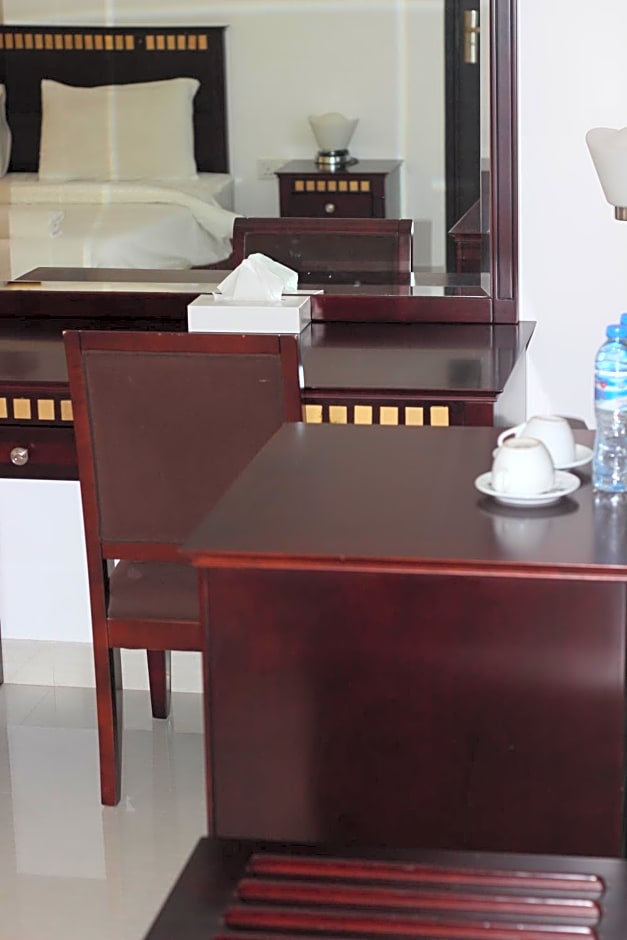 This twin bed features a tile/marble floor, seating area and electric kettle.